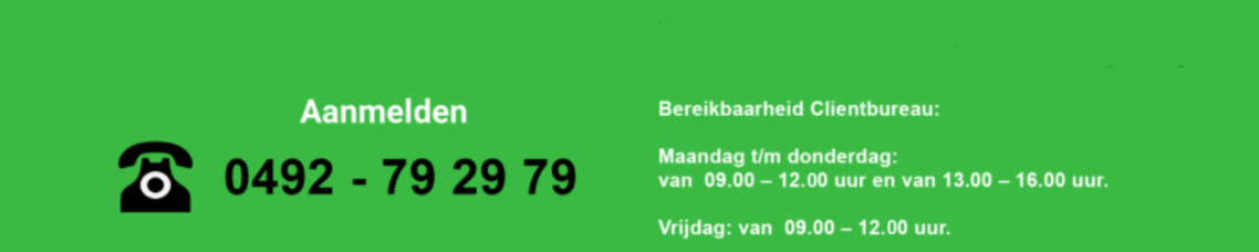 Ons clientbureau is telefonisch bereikbaar van maandag t/m donderdag van 9.00 – 12.00 uur en van 13.00 – 16.00 uur. Op vrijdag van 9.00 – 12.00 uur.