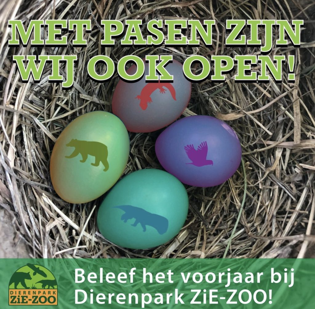 Ook tijdens de paasdagen is dierenpark ZiE-ZOO gewoon geopend. Kijk voor de actuele openingstijden en entreeprijzen op de website.