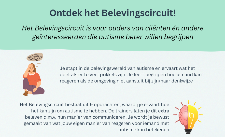 Het Belevingscircuit is bedoeld voor ouders van cliënten én andere geïnteresseerden die autisme beter willen begrijpen.