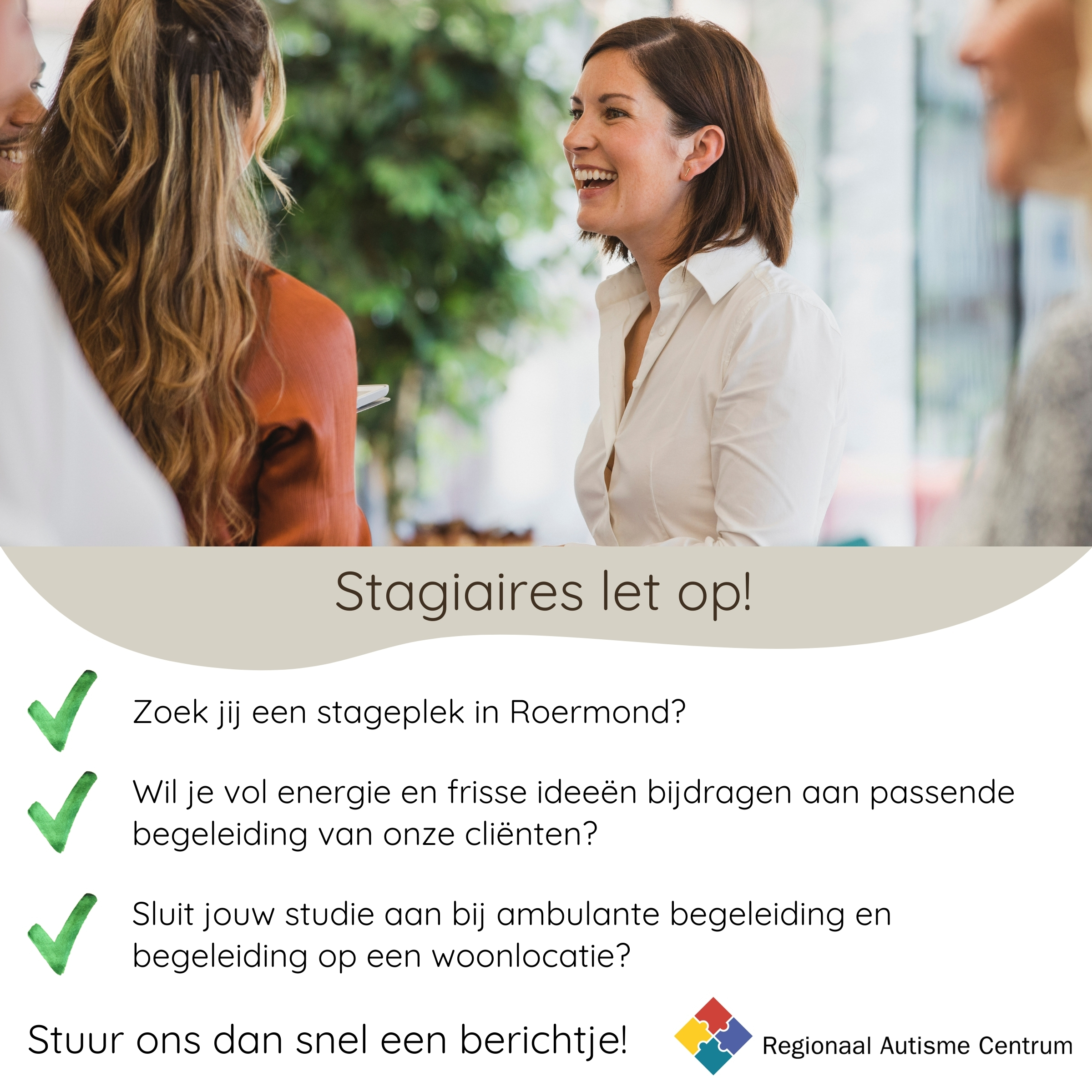 Wij bieden een leuke stage in de ambulante begeleiding en op een woonlocatie in de regio Roermond.